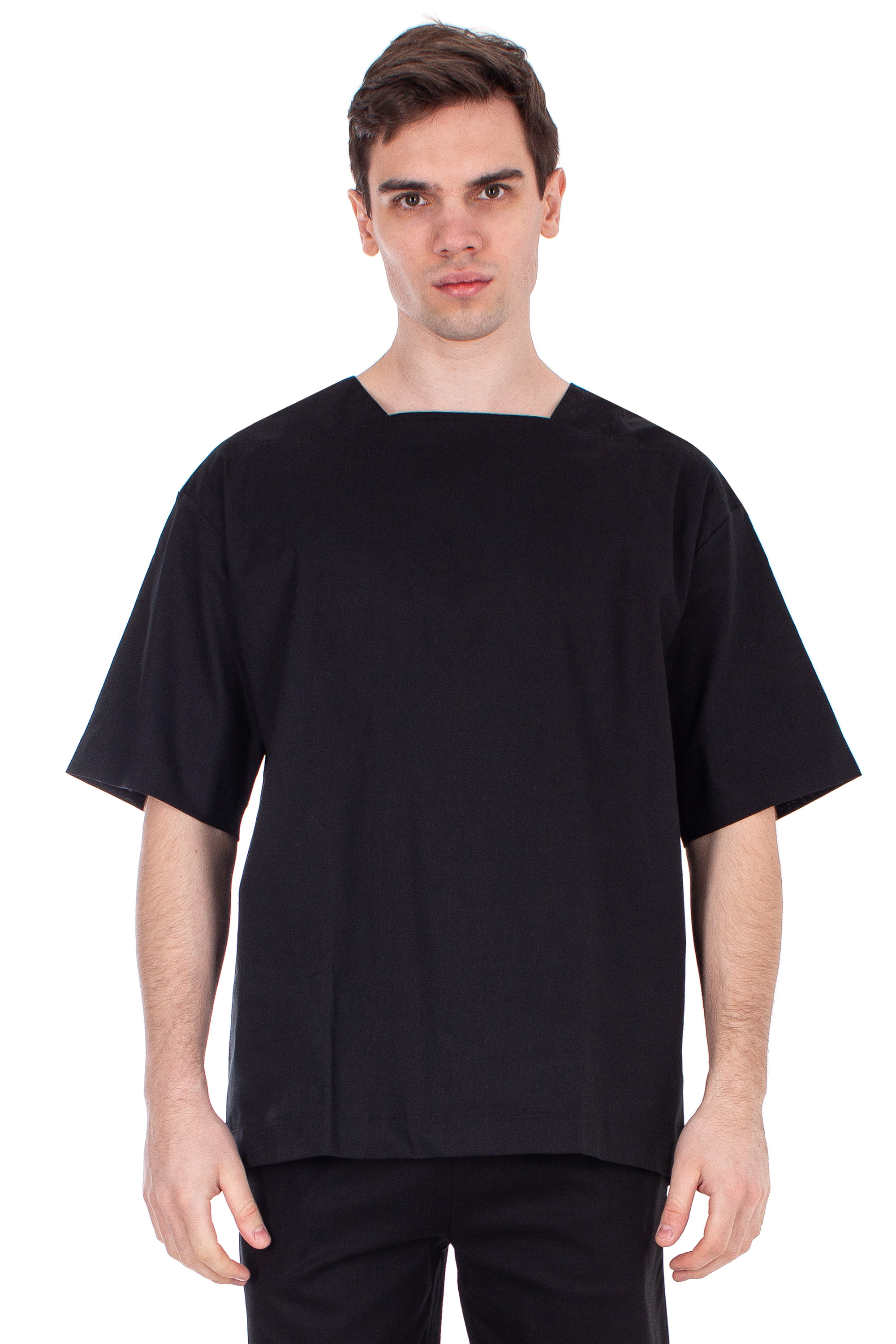 Features an oversized fit, a trapezoidal neckline, and a distinct silhouette that adds volume and ease.